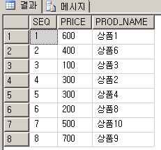 (300, '상품4'), (200, '상품8'), (500, '상품10'), (700, '상품9');